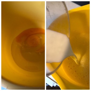 Яйца взбить с солью, сахаром и маслом в пену. Влить 300 мл молока, взбить пару секунд.