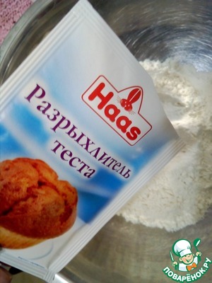 Добавим в муку разрыхлитель.