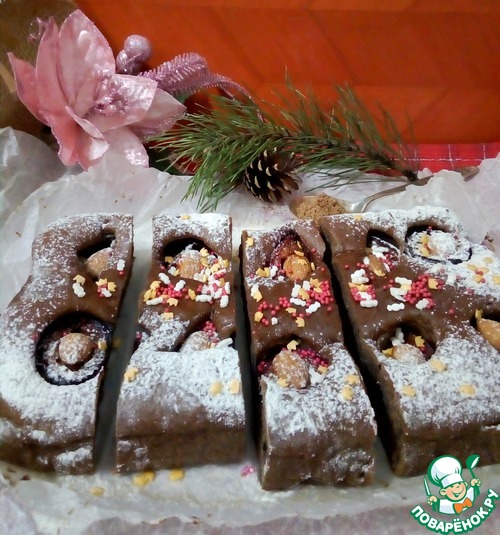 Шоколадно-творожный пирог со сливами