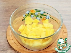 2. Очищенный картофель отвариваем до полуготовности, воду сливаем, картофель охлаждаем.