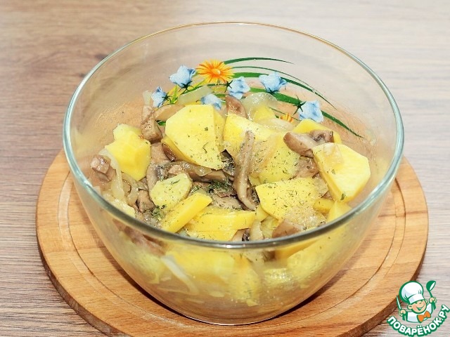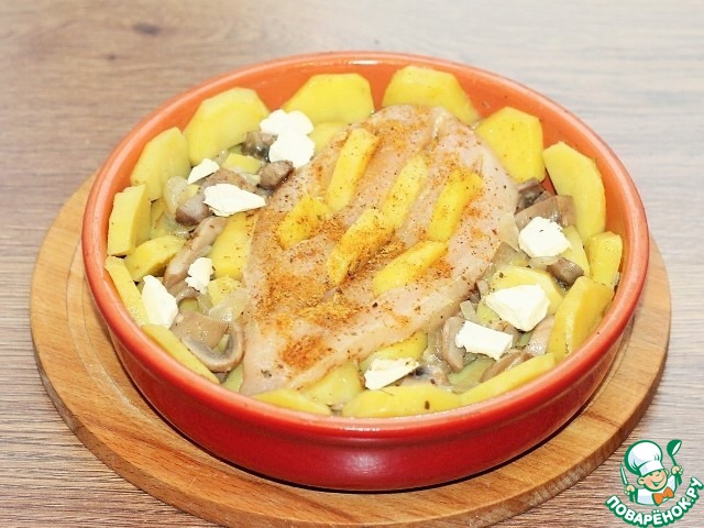 Рецепт «Картошка в духовке с курицей, грибами»: