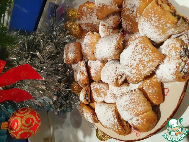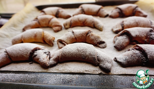 Посыпаем ей наши рогалики через сито! Слегка остужаем и можно наслаждаться!