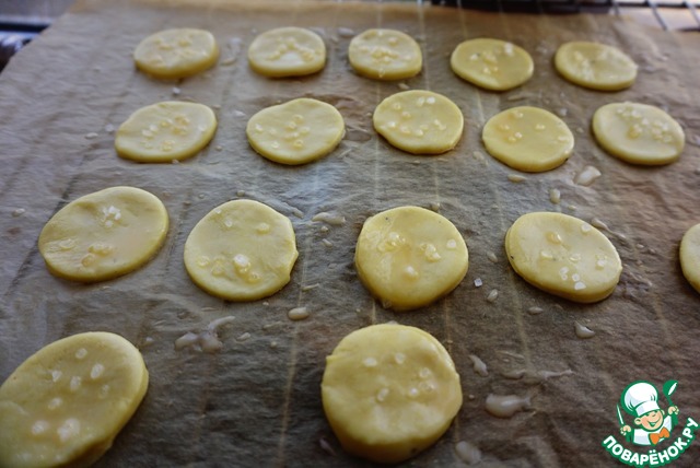 ПиСи: Из остатков теста я испекла крекеры. Я их смазала яйцом, посыпала морской солью и выпекала 10 минут