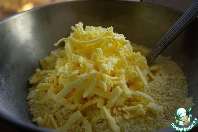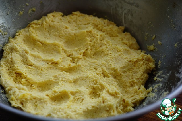 Добавляем ее к нашей песочной крошке и хорошо вымешиваем тесто.