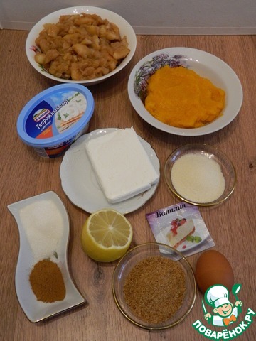Ингредиенты для «Запеканка тыквенно-яблочная с творогом и сыром»: