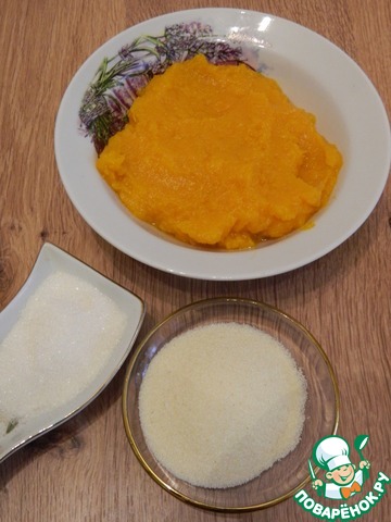 Хорошо размешала, чтобы не было комочков манки и дала постоять 20 минут. К тыкве добавила ванилин.