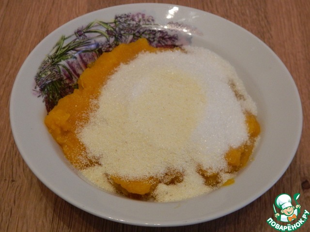 Смешала 2 ст. л. сахара с манкой и добавила смесь к тыкве.