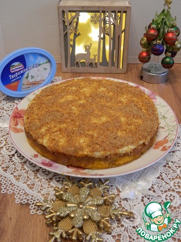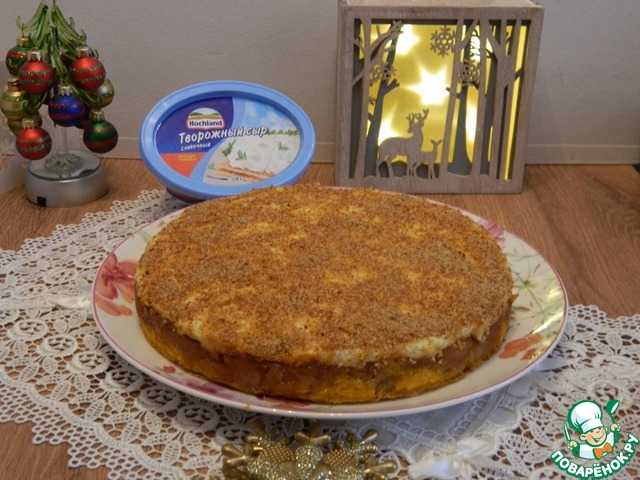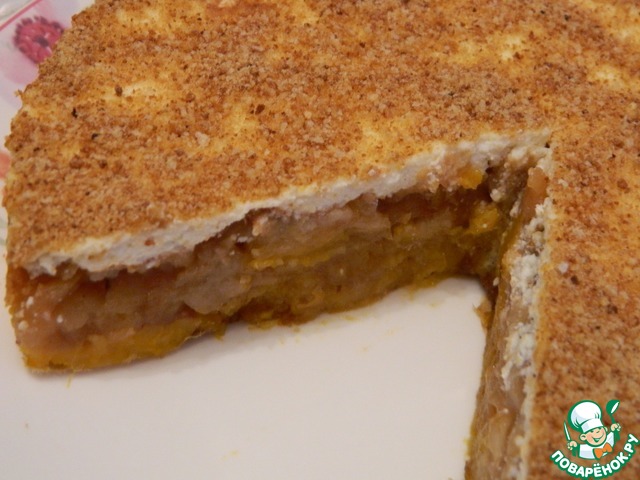 Очень мягкая, с большим слоем яблок, нижний слой тыквы, а верхний творожный. В следующий раз попробую и снизу сделать такой же творожный слой.