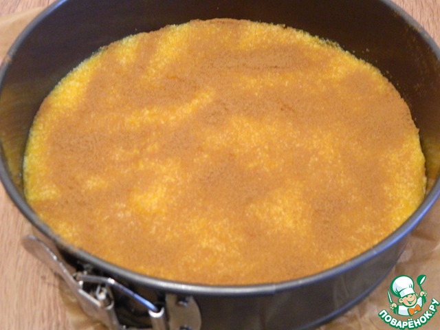 Выложила в форму диаметром 20 см тыквенную смесь. Форму предварительно смазала маслом и присыпала панировочными сухарями. По желанию можно на дно положить бумагу.