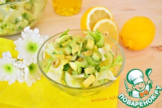 Нарезанные ингредиенты выкладываем в глубокую чашку. Добавляем приготовленную заправку.