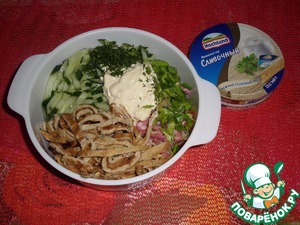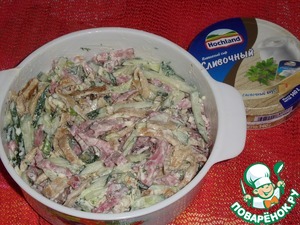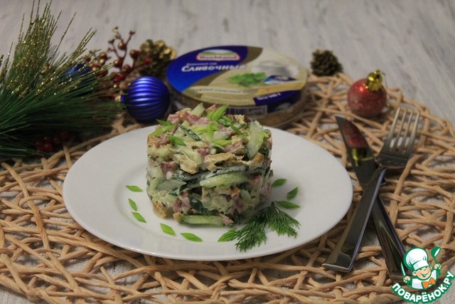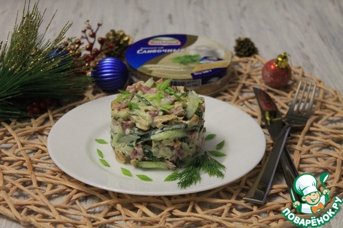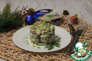 Откуда появился в нашей семье этот рецепт салата, теперь уже и вспомню. НО хочу сказать, что готовлю его часто - и на праздничный стол, и в простой будний день. Самые обычные продукты, соединяясь в чашке, выдают отличный результат. Проверено! Единственное отступление в этот раз - замена части майонеза на плавленый сыр.