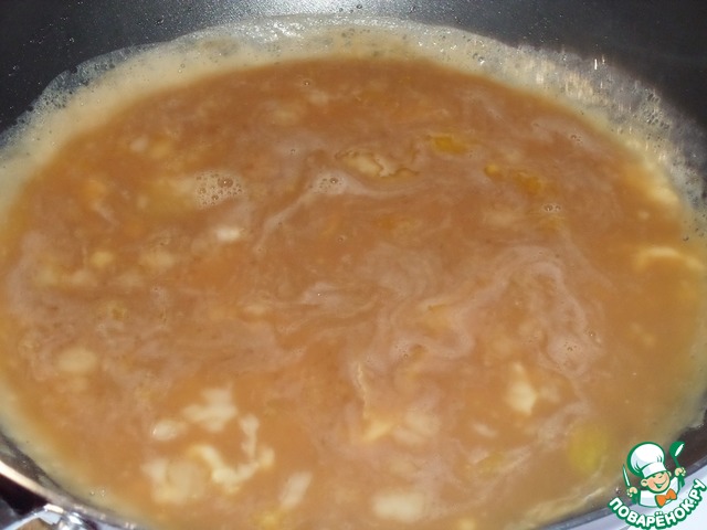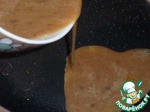 На разогретую сковороду выливаем приготовленную яичную смесь.