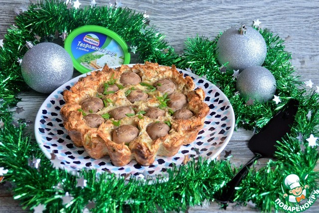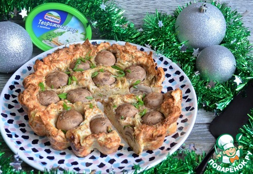 Рецепт «Пирог с творожным сыром и шампиньонами»: