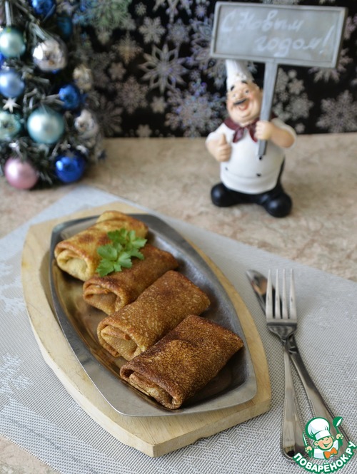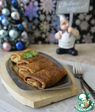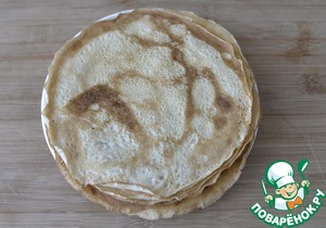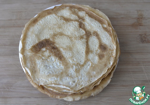 Для приготовления этого блюда готовим несладкие блины по одному из рецептов на сайте или вашему проверенному рецепту.