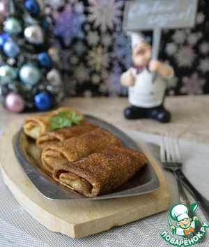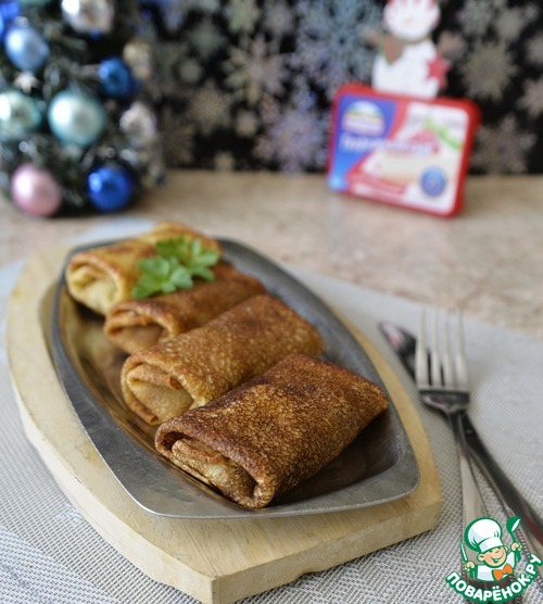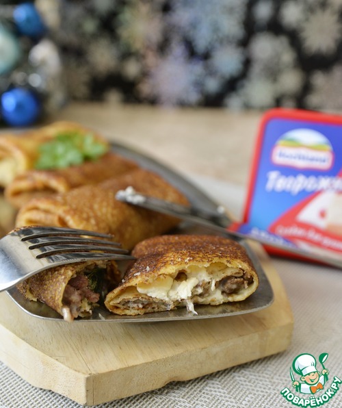 Рецепт «Блинчики, фаршированные мясом птицы и сыром»: