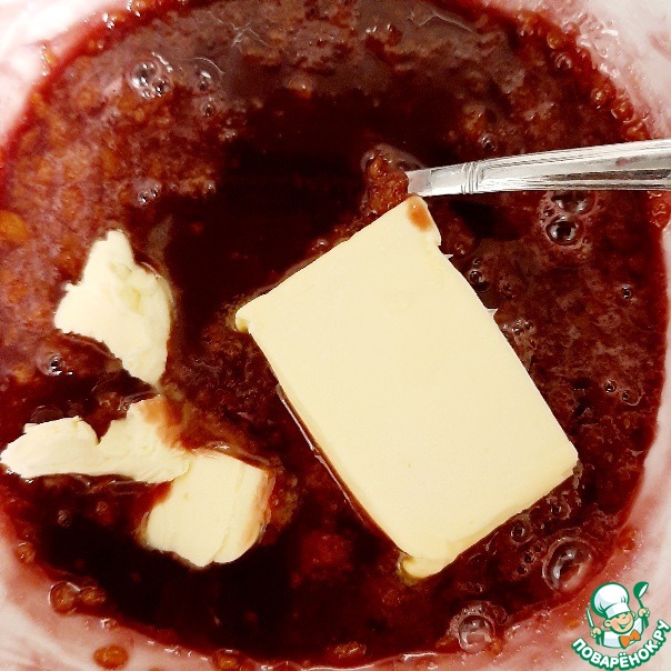Добавить масло, остудить до комнатной температуры. Убрать в холодильник.