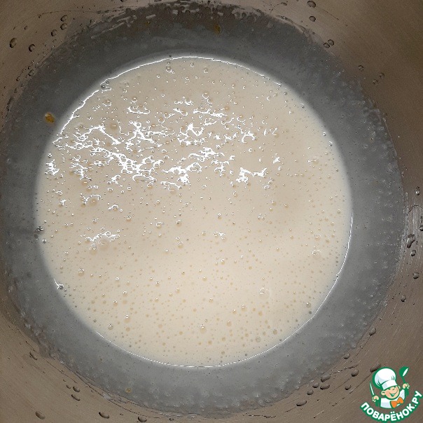 Яйца взбить с сахаром в крепкую пену. Продолжая взбивать, тонкой струйкой влить растительное масло.