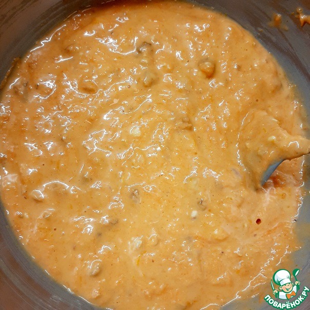 Добавить натертую морковь и орехи и все хорошо перемешать. -