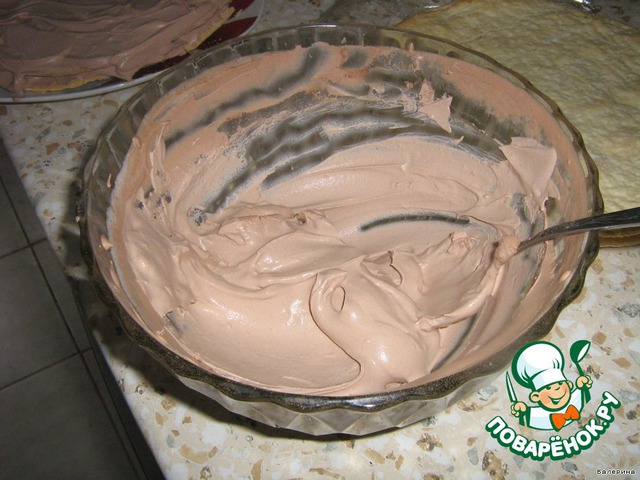 А теперь коржи замочить в молоке, но не очень долго, чтобы они не размокли.