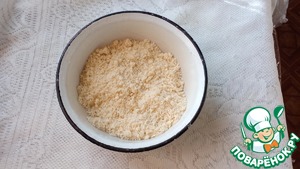 В муку добавляем соль, сахар и нарезанное холодное сливочное масло. Перетираем в крошку.