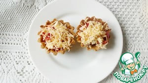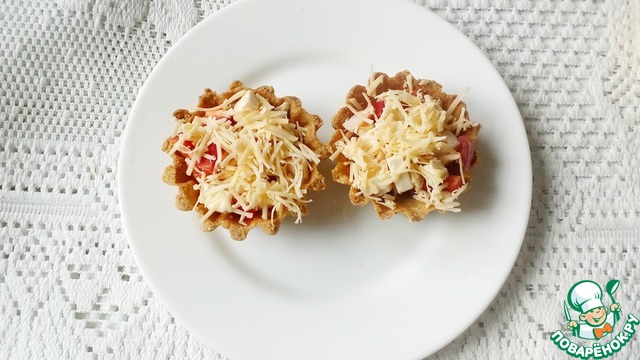 Наполняем тарталетки, посыпаем тертым сыром и отправляем в духовку минут на 5-10.