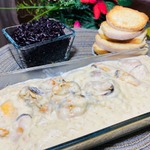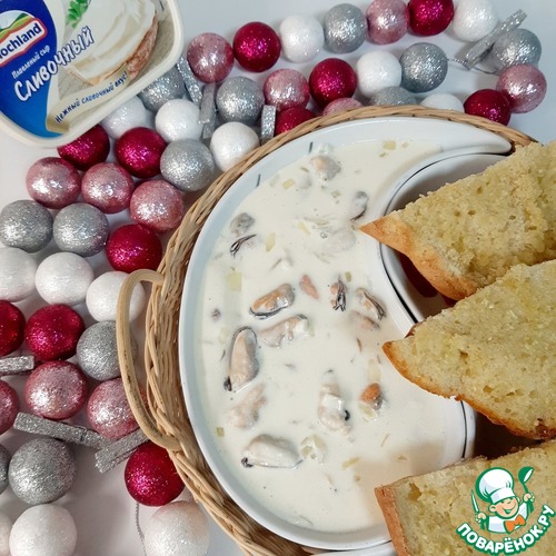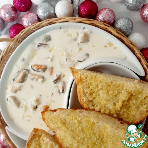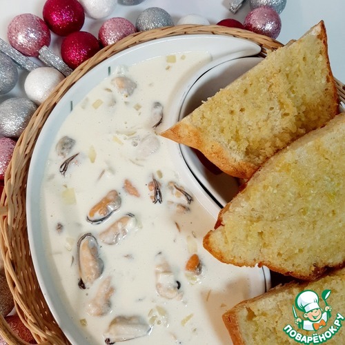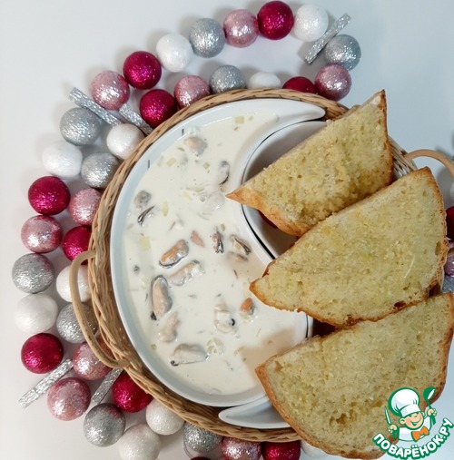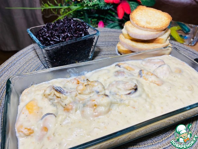 Мидии с бархатным, очень сливочным соусом, в который так вкусно макать чесночный поджаренный хлеб.
