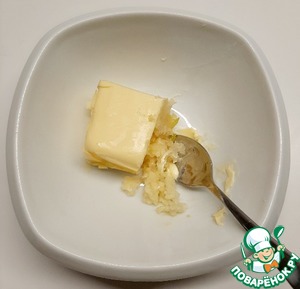 Масло комнатной температуры перемешать с оставшимся чесноком, выдавленным через пресс. -