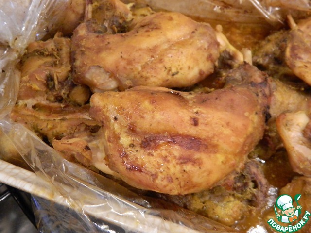 • Достала кролика, вскрыла рукав, осторожно, не обожгитесь паром и обмазала этим медово-соевым раствором кролика, чтобы мясо подрумянилось и убрала в духовку еще на полчаса.