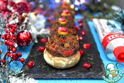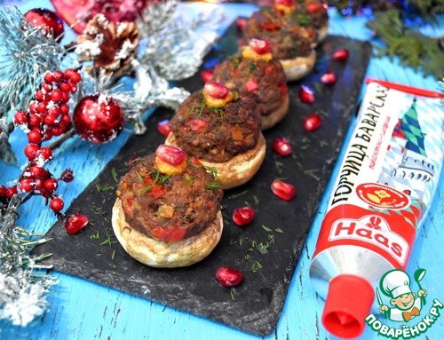 Праздничная закуска из шампиньонов с мясными фрикадельками, обжаренным болгарским перцем с луком и баварской горчицей. Получается очень сочная и нежная начинка. Такая закуска не останется незамеченной на праздничном столе! Угощайтесь!