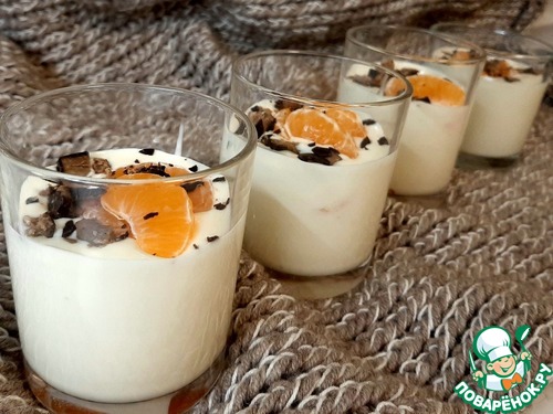 Нежный сливочно-шоколадный крем и кислинка мандарина. Очень вкусный, гармоничный и уютный десерт. Готовить быстро и просто, а в результате - восторг!