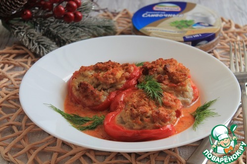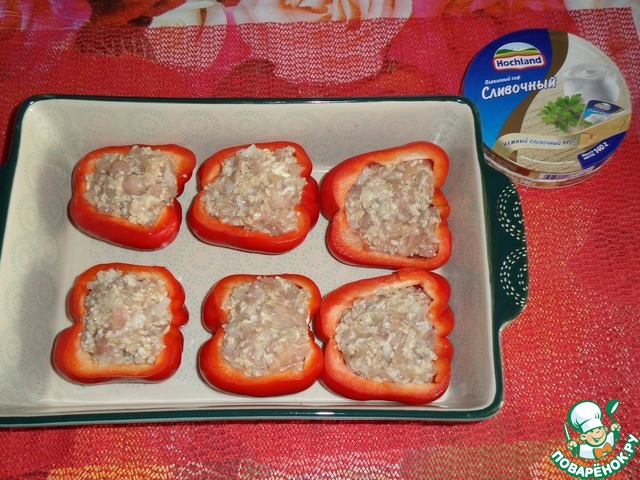 Рецепт «Перец, фаршированный курицей, овсянкой и сыром»: