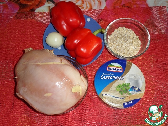 Ингредиенты для «Перец, фаршированный курицей, овсянкой и сыром»: