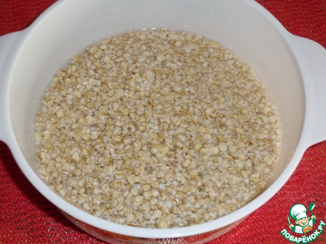 В чашку высыпаем овсяные хлопья. Добавляем щепотку соли и 100 мл очень горячей воды. Накрываем чашку и оставляем на 5 минут.