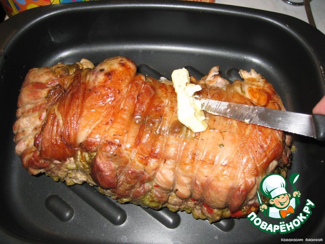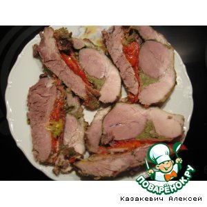 Рецепт «Мясной рулет с перцами, шпинатом и прошуто»: