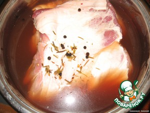 Довести до кипения 2 л воды, добавить перец горошком, лавровый лист, гвоздику, ягоды можжевельника, половину головки чеснока, слегка раздавив неочищенные зубчики рукояткой ножа, соль. Готовить 10 минут, остудить. Уложить шейку в большую посудину, залить рассолом, что бы мясо было покрыто на 5 см. Оставить в холодном месте на 48 часов.