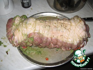 Закрыть «книгу», перевязать шпагатом. Запекать в рукаве 2 часа при 180 градусах.