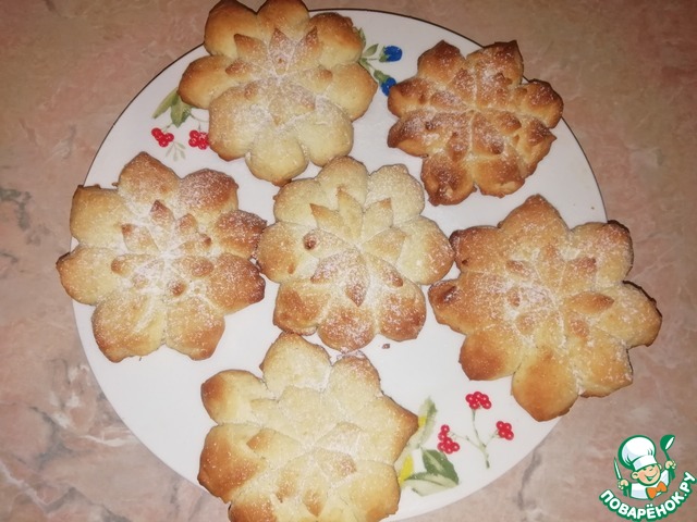 Предлагаю приготовить вкусное и красивое печенье "Снежинки", формочки не понадобятся. Печенье готовится очень легко из самых простых продуктов.