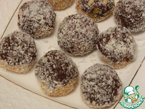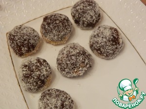 Обваляем конфетку в кокосовой стружке.
