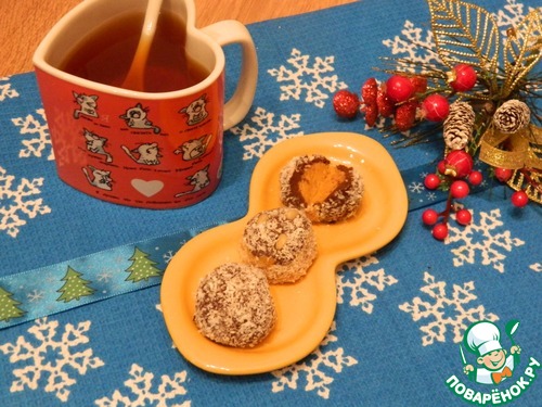 Так уж повелось, что основное лакомство Нового года - это конфеты. Но никого уже не привлекают магазинные шедевры. Вот и я решила приготовить что нибудь на свой вкус. Конфетки со сливочно-тыквенном вкусом, шоколадной шапочкой и кокосовой обсыпкой придутся многим по вкусу. Нам понравились. В меру сладкие, нежные и ничего лишнего.