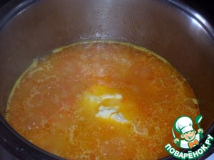 Затем добавляем 1 ст. л. с горкой плавленого сыра ТМ "Hochland".