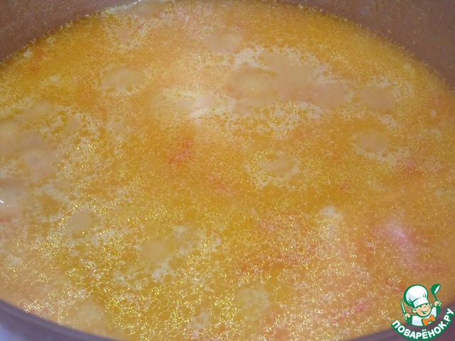 Затем пюрируем суп с помощью блендера. Доводим суп-пюре до кипения. Накрываем кастрюлю крышкой и убираем с огня.
