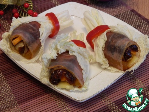 Рецепт «Финики в беконе с орехами и сыром»: