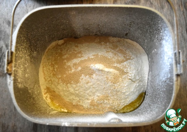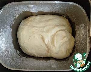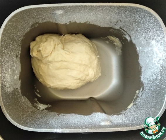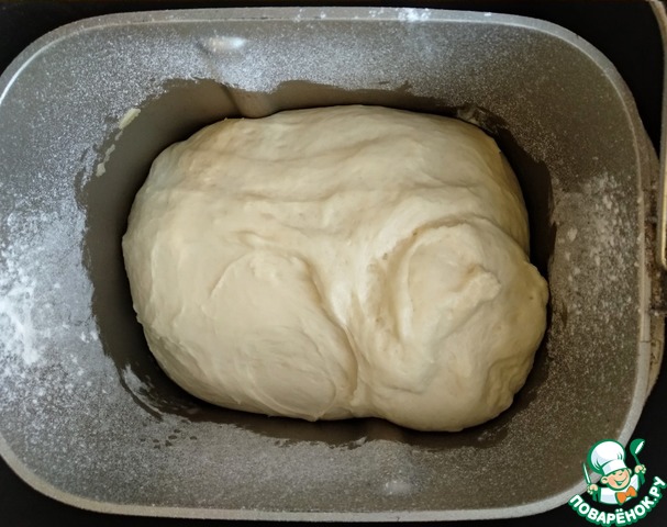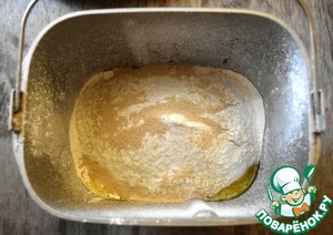 Замесить тесто. Накрыть и оставить в теплом месте, для увеличения в объеме. Я оставляю в хлебопечке.
