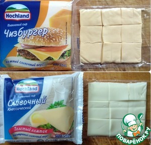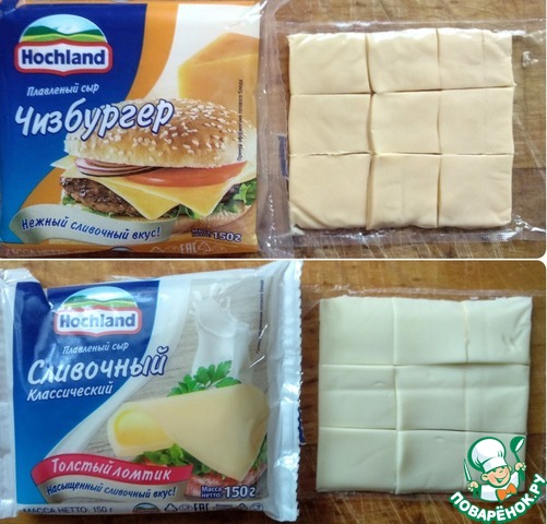 - Сыр плавленый (сливочный и чизбургер) — 4 шт