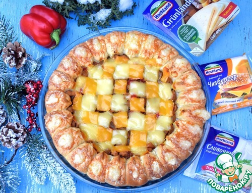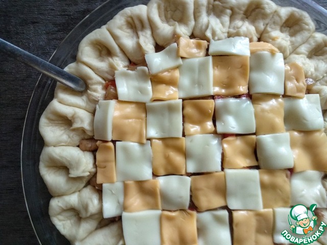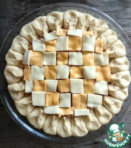 В углубления разложила сыр. Выпекать пирог в духовке, заранее разогретой до 180 градусов, 25-30 мин. до румяности.
