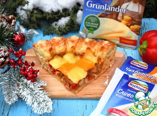 Рецепт «Пирог с курицей, ананасами и сыром»: