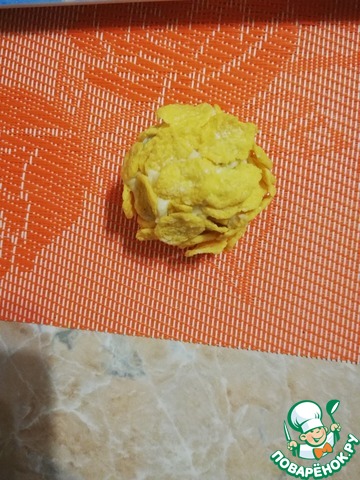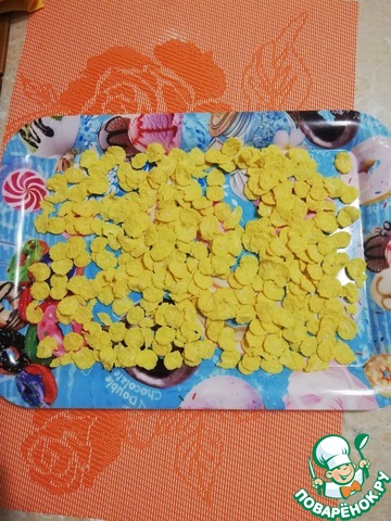 На поднос или широкую тарелку насыпать кукурузный хлопья.