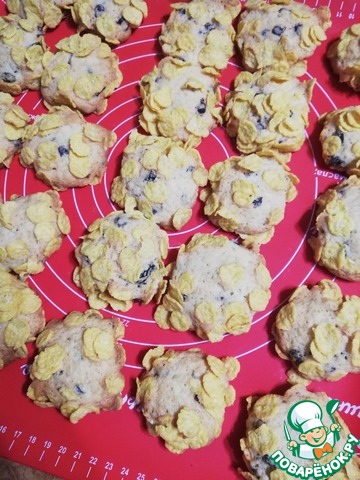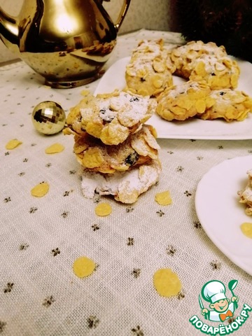 Столовой ложкой выкладывать небольшие печенюшки на хлопья, сверху тоже насыпать хлопья и сформовать руками печенье.