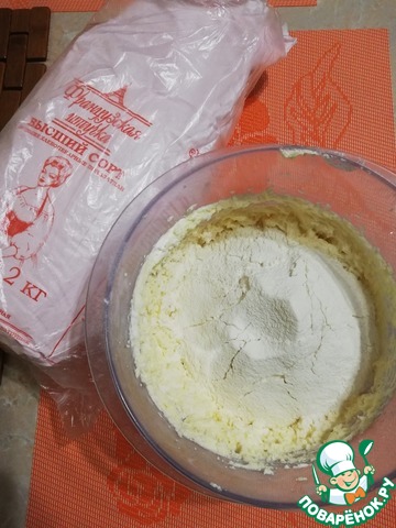 Добавить просеянную муку, крахмал, ванилин и разрыхлитель. Я использую муку ТМ "Французская штучка" высшего сорта.
