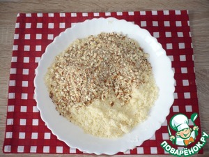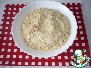 В сливочно - мучную крошку добавьте измельченный миндаль. Всё хорошо перемешать.